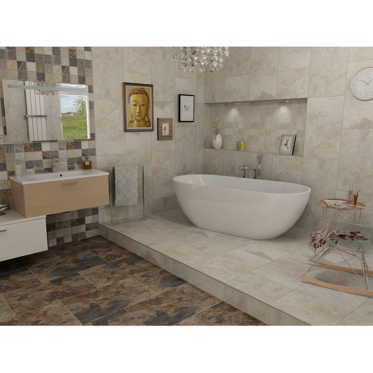 - Material: Verbundwerkstoff (spezielle Mischung aus gemahlenem Kalkstein, Quarzsand, Epoxidharz und Farbstoffen)