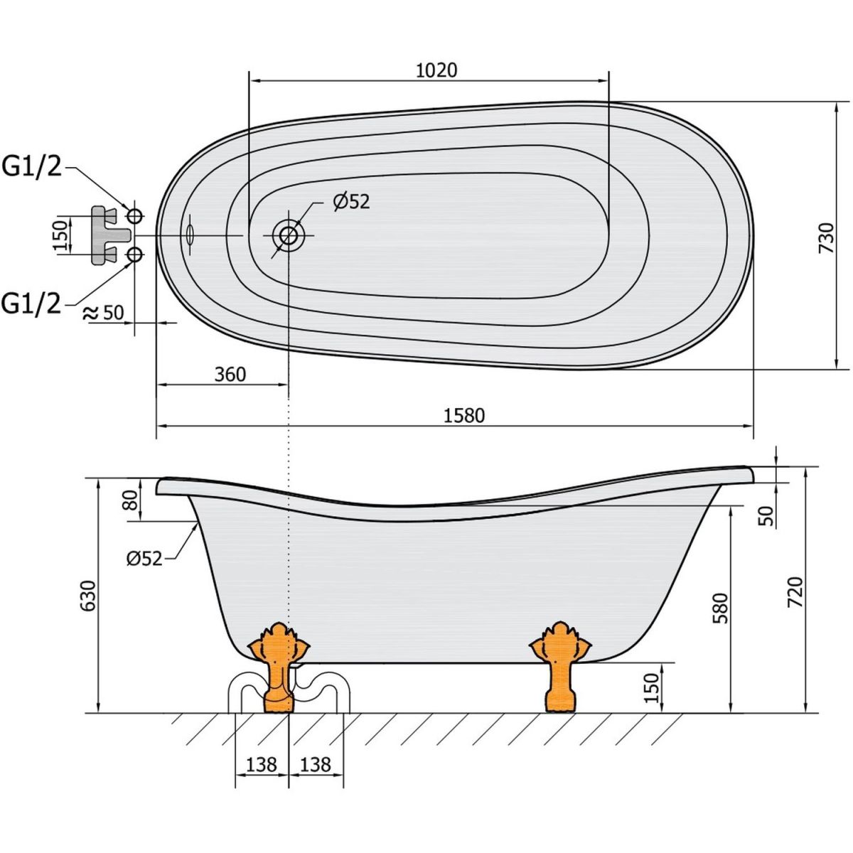Polysan Retro Freistehende Badewanne 158x73 cm oval zweifarbig 72972
