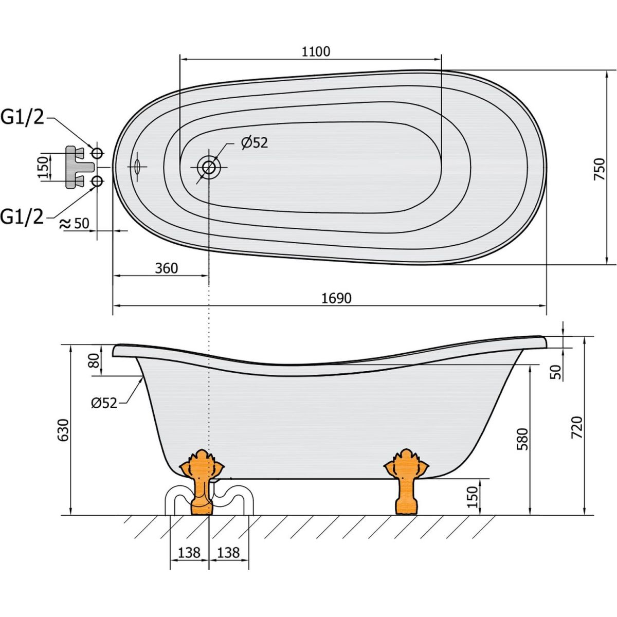 Polysan Retro Freistehende Badewanne 169x75 cm oval zweifarbig 72967