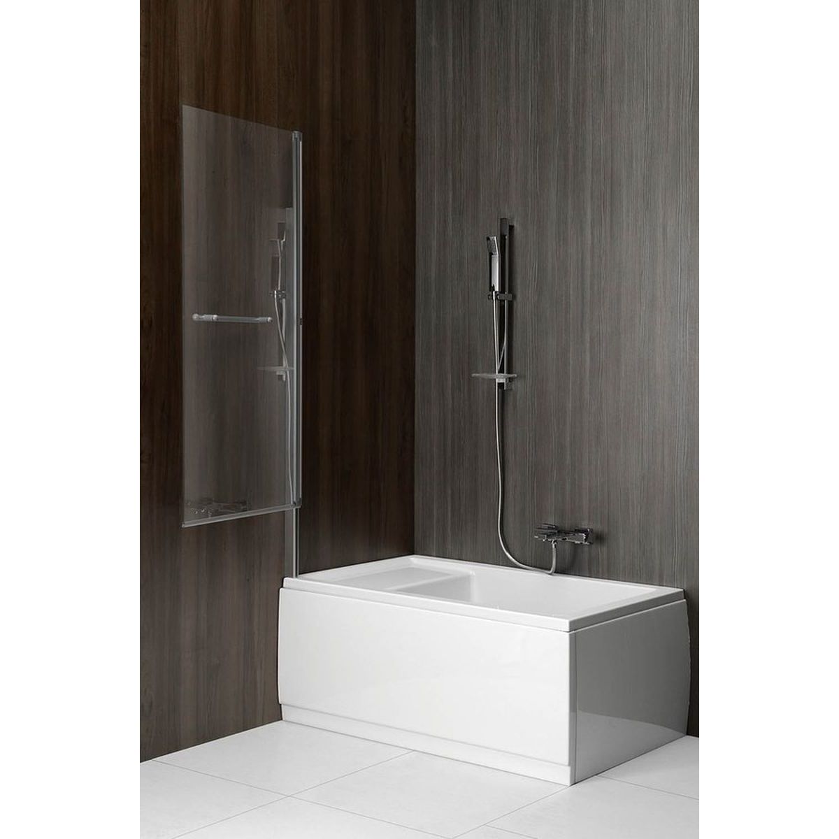 Polysan Rioni Badewannenabtrennung 71 cm einteilig silber Glanz/durchsichtiges Glas 72915