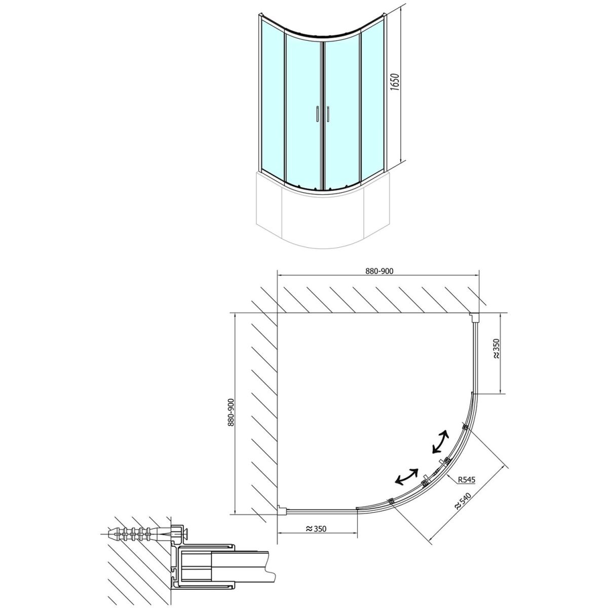 - einfache Montage, 20 mm Toleranz durch Verstellung der Scheibe im Profil