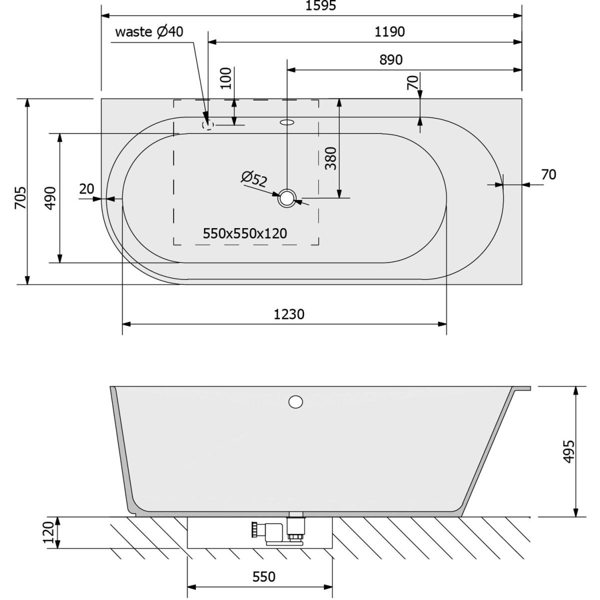 - Abflussdurchmesser: 52 mm