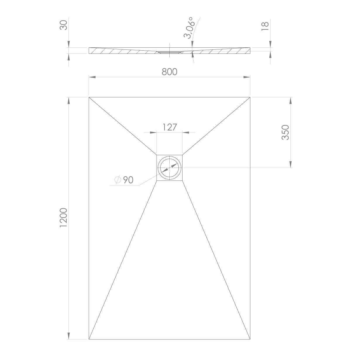 - Durchmesser des Abflusses: 90 mm
