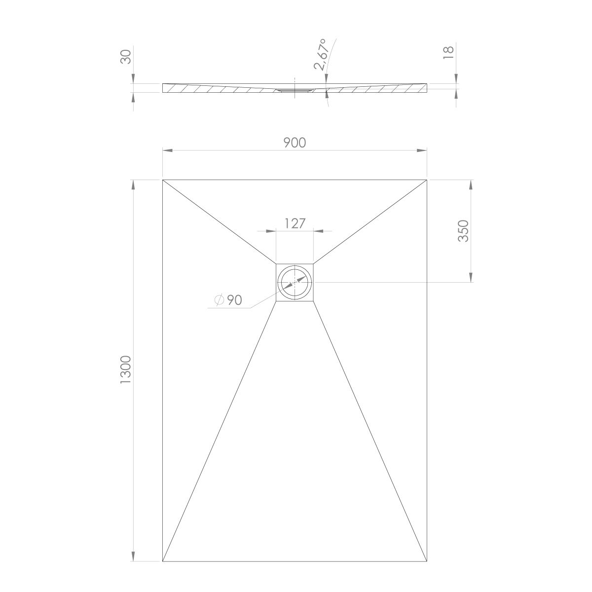 - Durchmesser des Abflusses: 90 mm