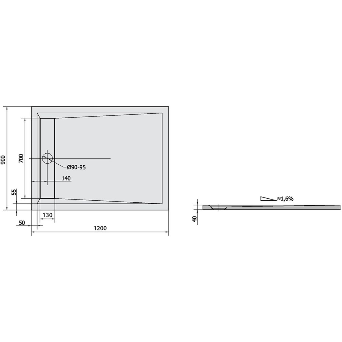 Polysan Varesa Rechteckige Duschwanne 120x90 cm weiß 71603