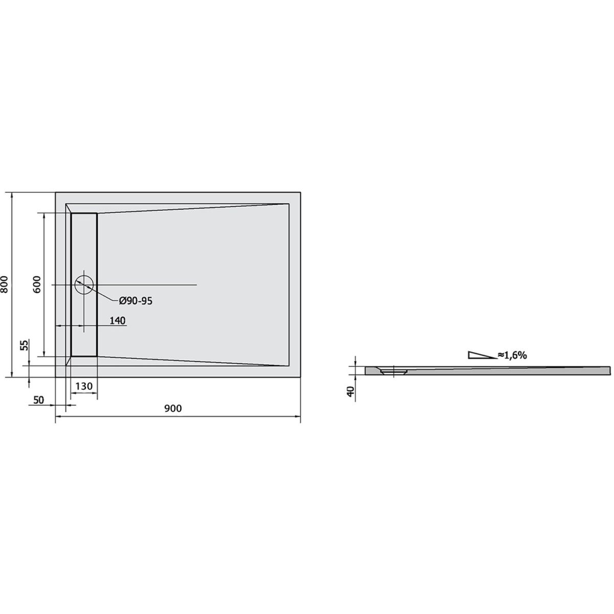 Polysan Varesa Rechteckige Duschwanne 90x80 cm weiß 71606