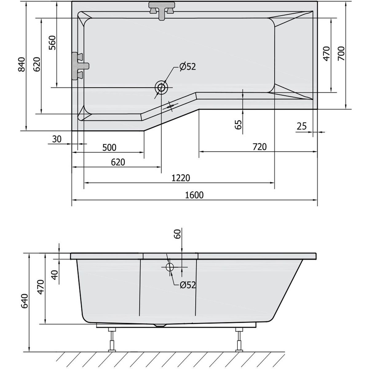 Polysan Versys Eckbadewanne 160x84 cm linksseitig weiß 14611