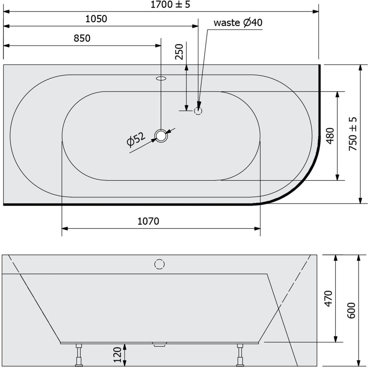 - Abflussdurchmesser: 52 mm
