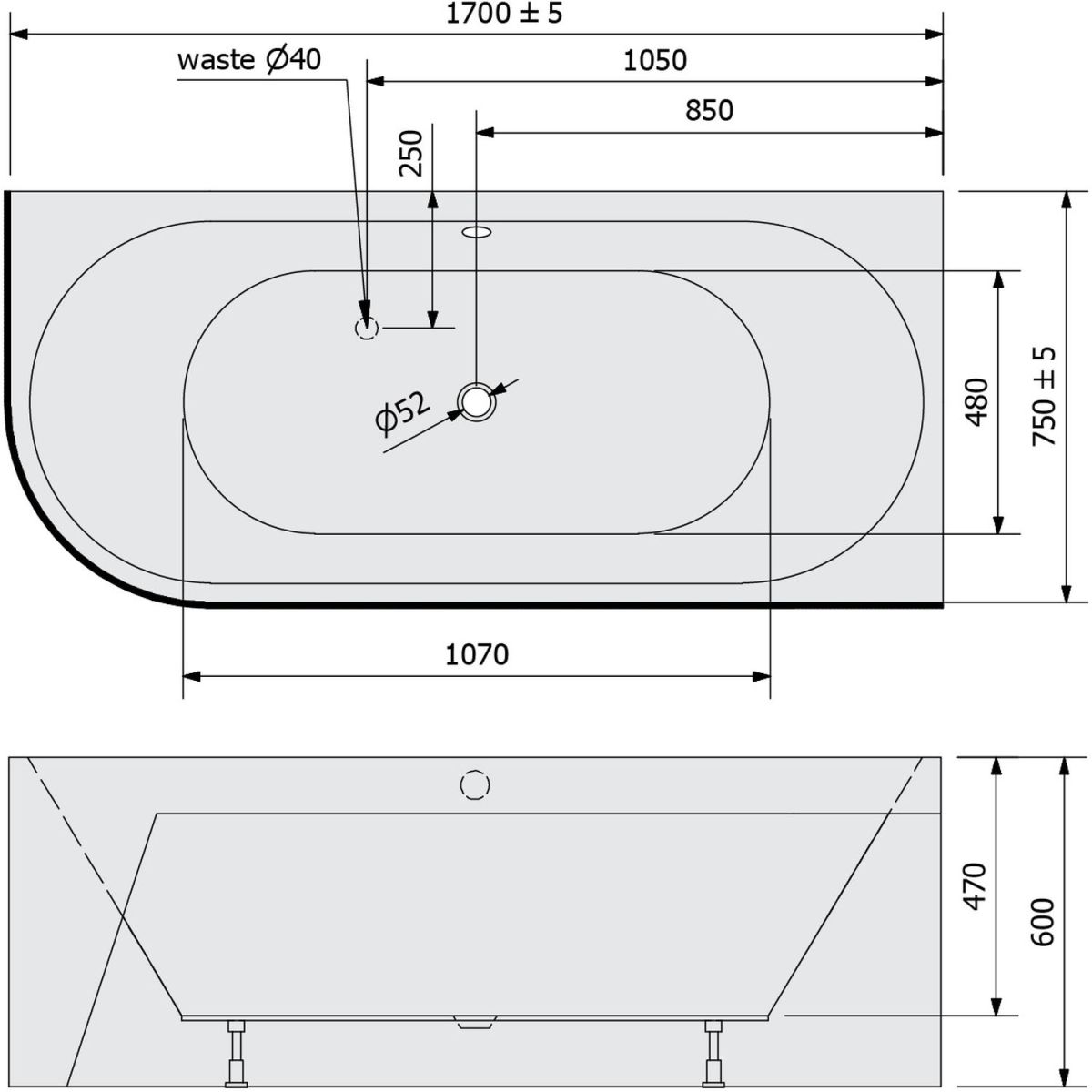 - Abflussdurchmesser: 52 mm