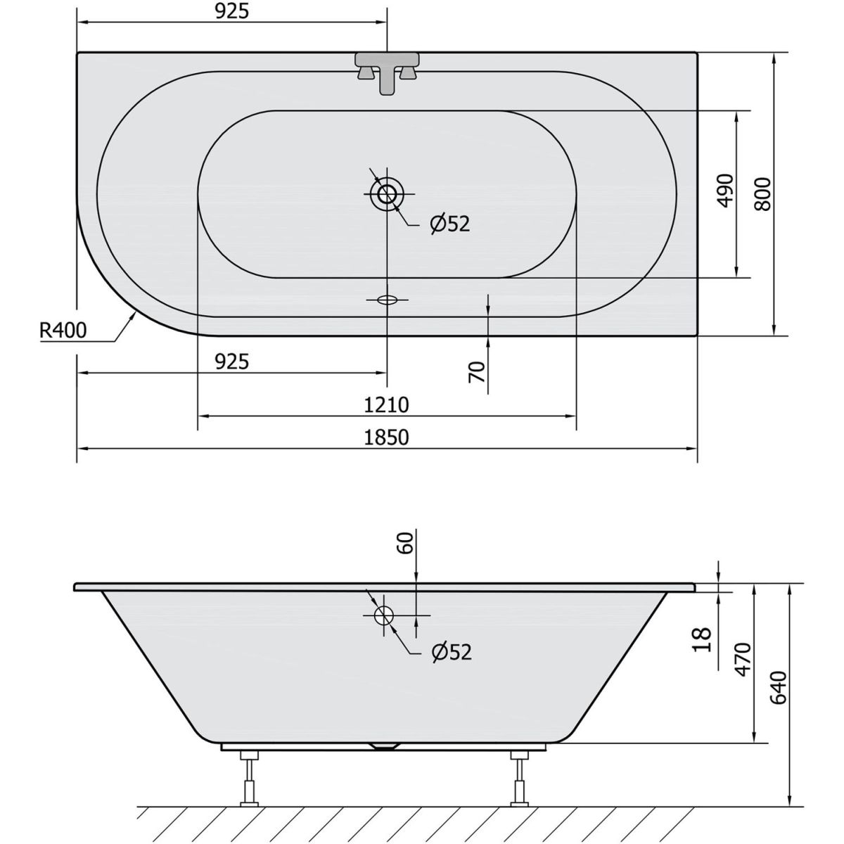 Polysan Viva Eckbadewanne 185x80 cm rechtsseitig weiß 72129S