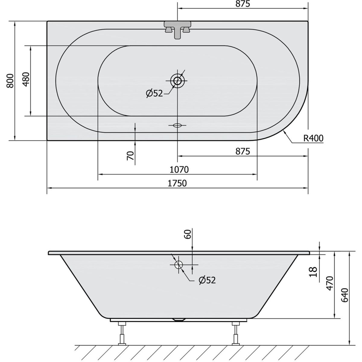 - Abflussdurchmesser: 52 mm