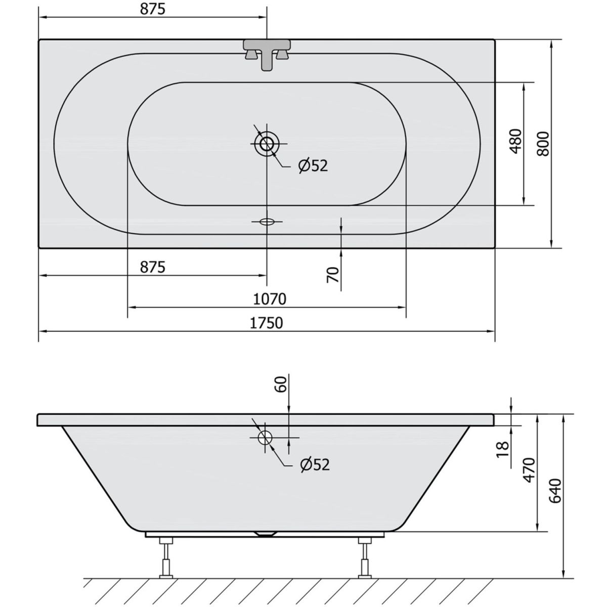 - Abflussdurchmesser: 52 mm