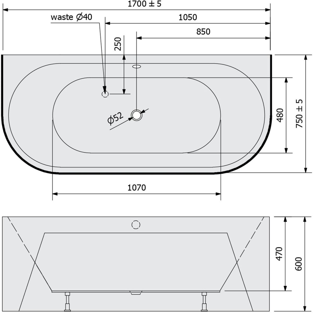 Polysan Viva Wandmontierte Badewanne 170x75 cm oval weiß 89119M