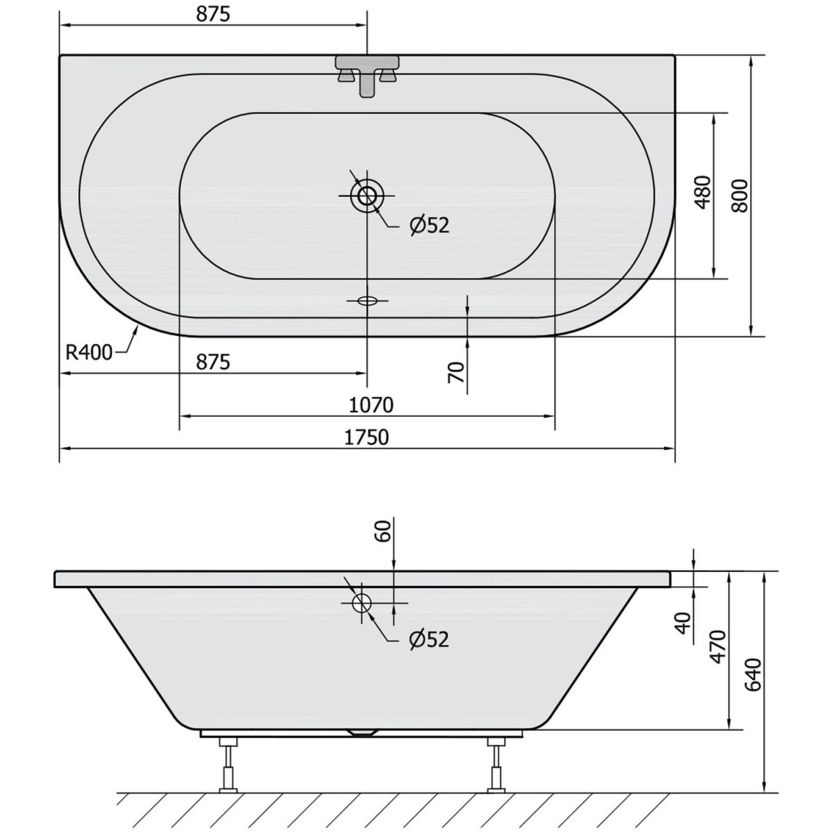 - Durchmesser des Abflusses: 52 mm