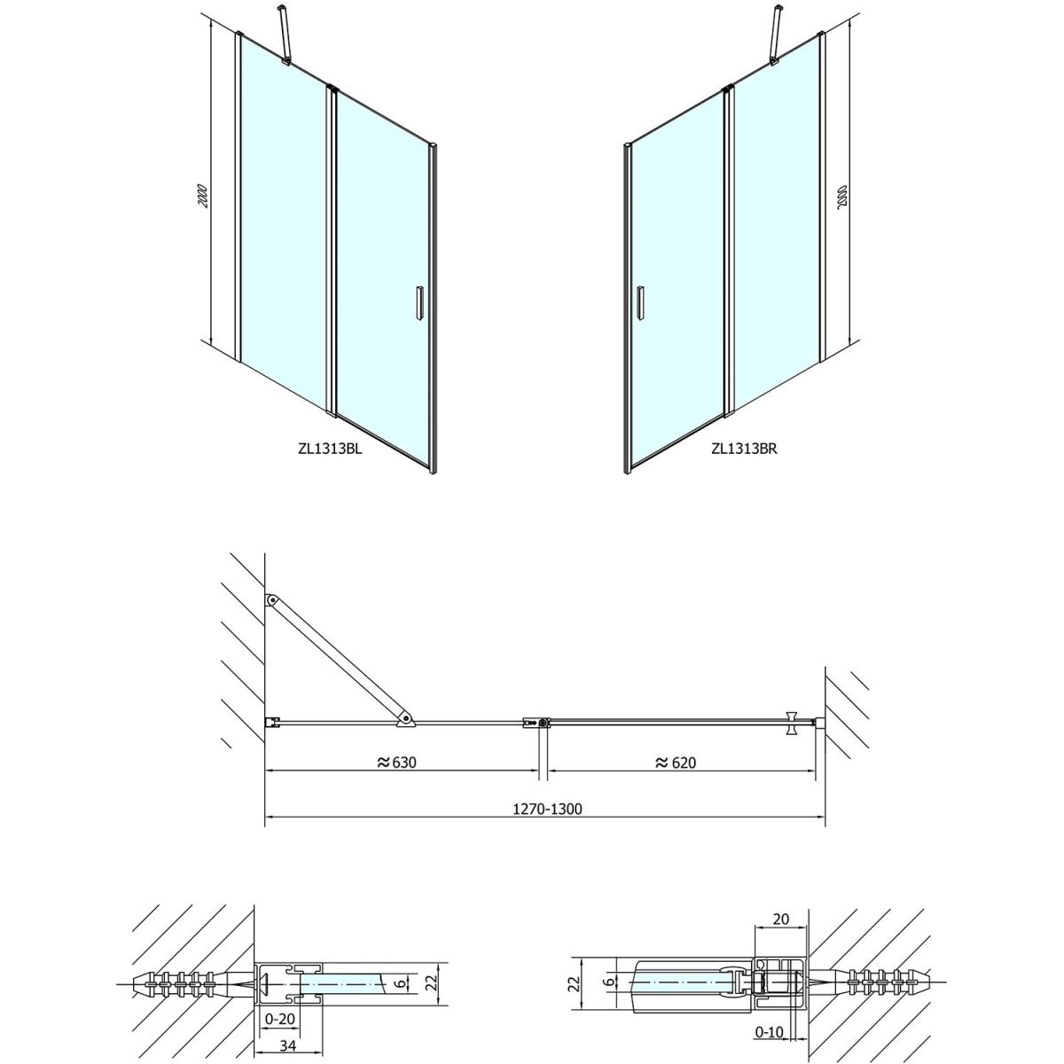 Polysan Zoom Line Black Duschtüren 130 cm aufklappbar schwarz Matte/durchsichtiges Glas ZL1313B