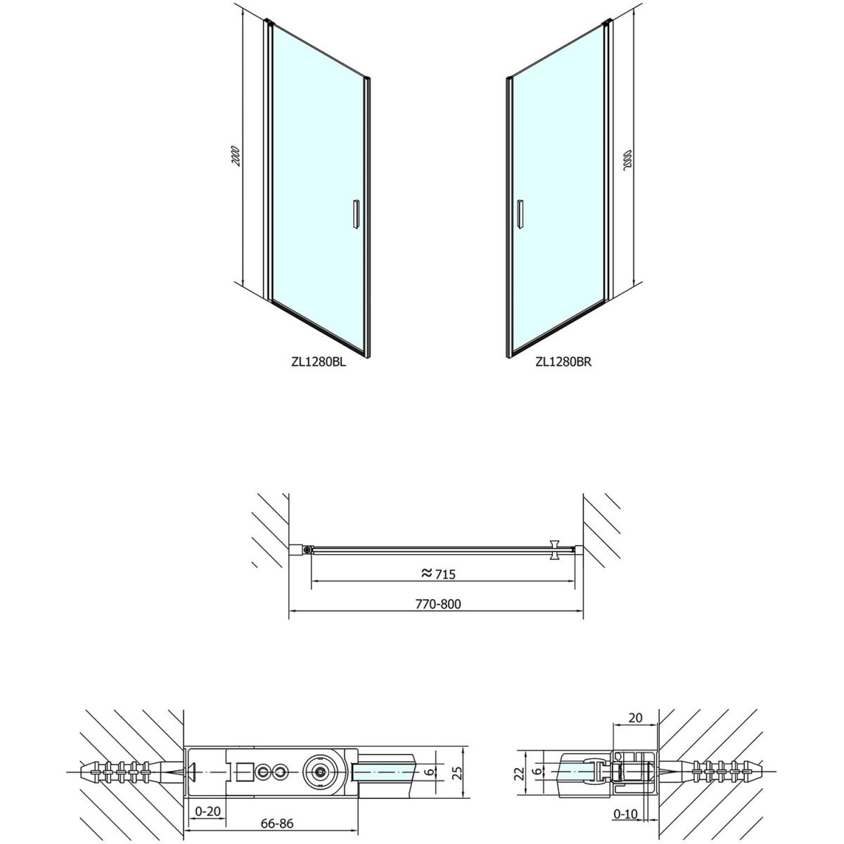 Polysan Zoom Line Black Duschtüren 80 cm aufklappbar schwarz Matte/durchsichtiges Glas ZL1280B