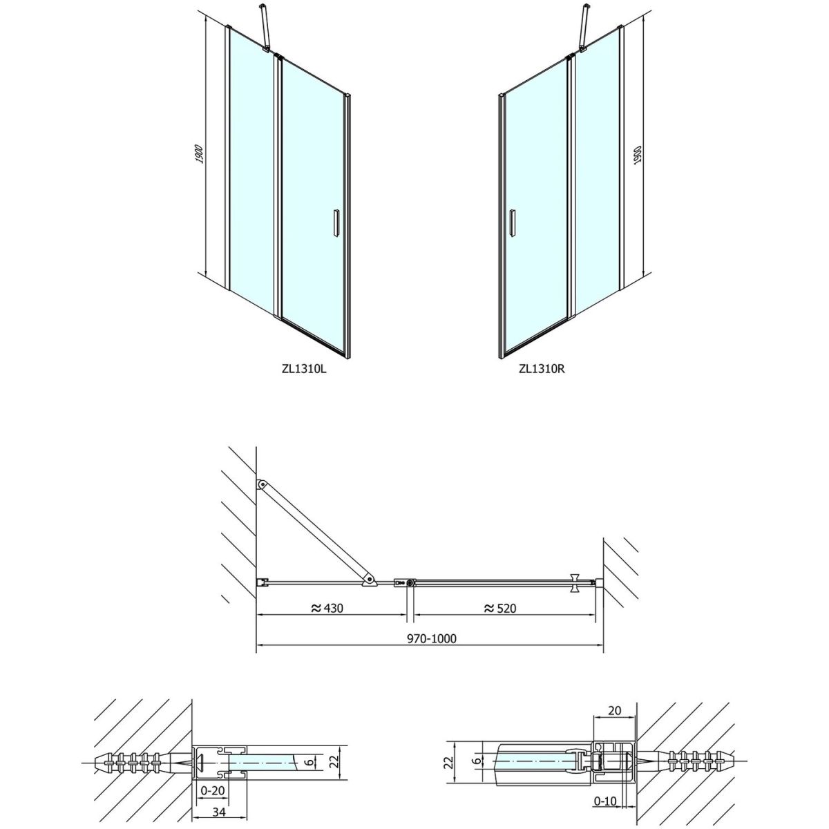 Polysan Zoom Line Duschtüren 100 cm aufklappbar chrom Glanz/durchsichtiges Glas ZL1310