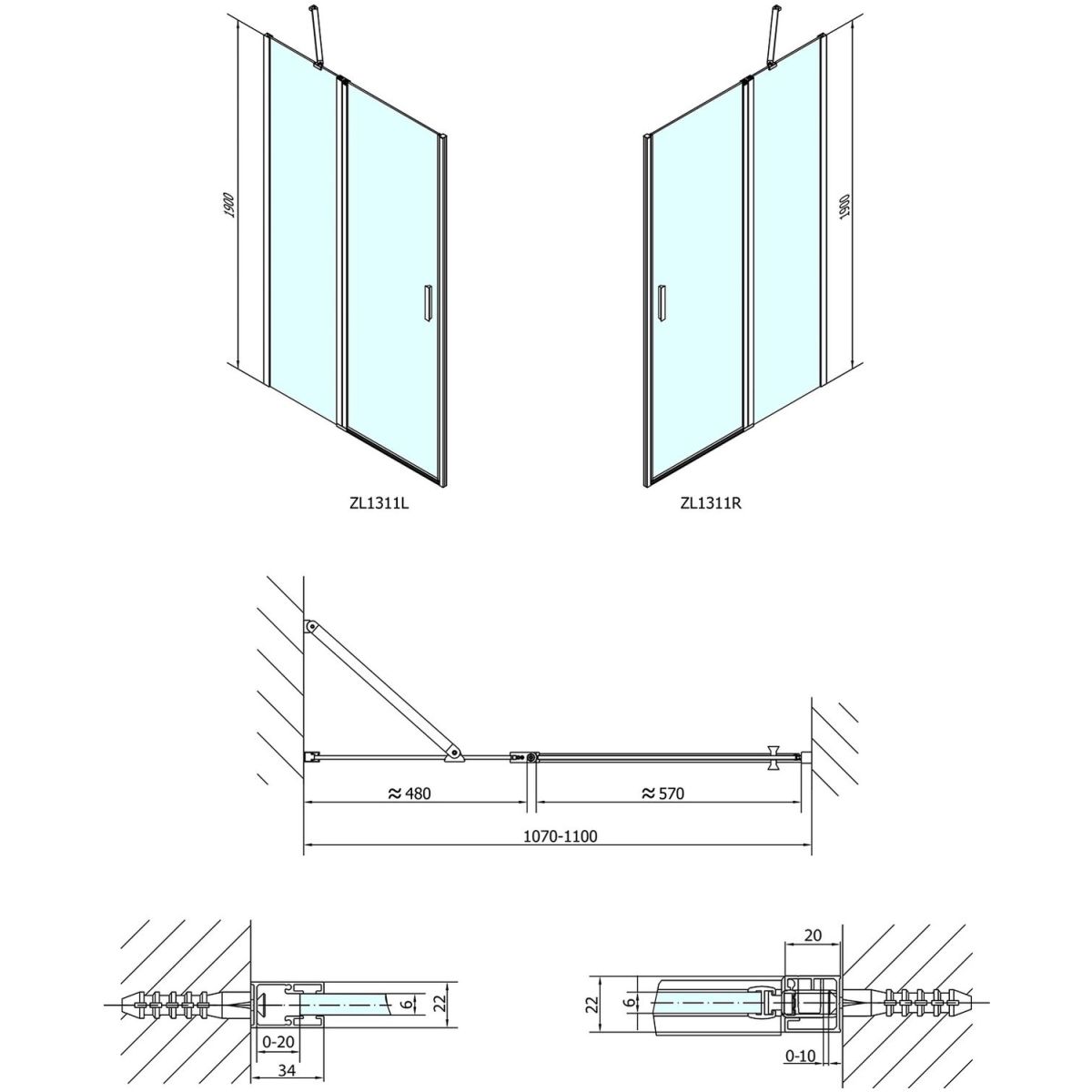Polysan Zoom Line Duschtüren 110 cm aufklappbar chrom Glanz/durchsichtiges Glas ZL1311