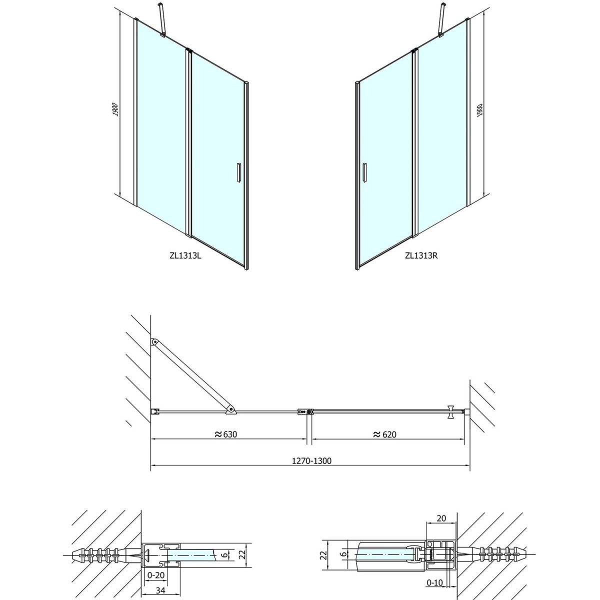 Polysan Zoom Line Duschtüren 130 cm aufklappbar chrom Glanz/durchsichtiges Glas ZL1313