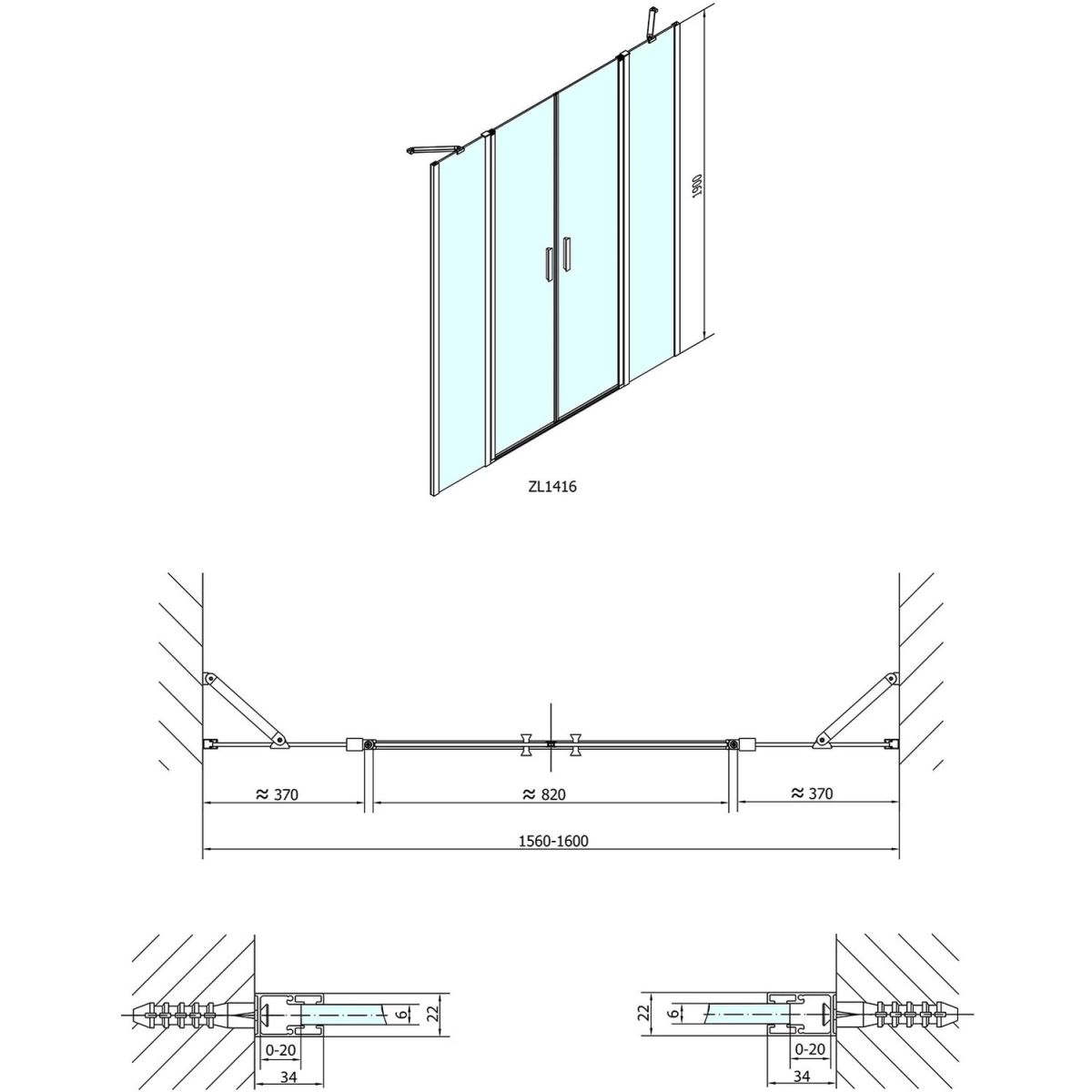 Polysan Zoom Line Duschtüren 160 cm aufklappbar chrom Glanz/durchsichtiges Glas ZL1416