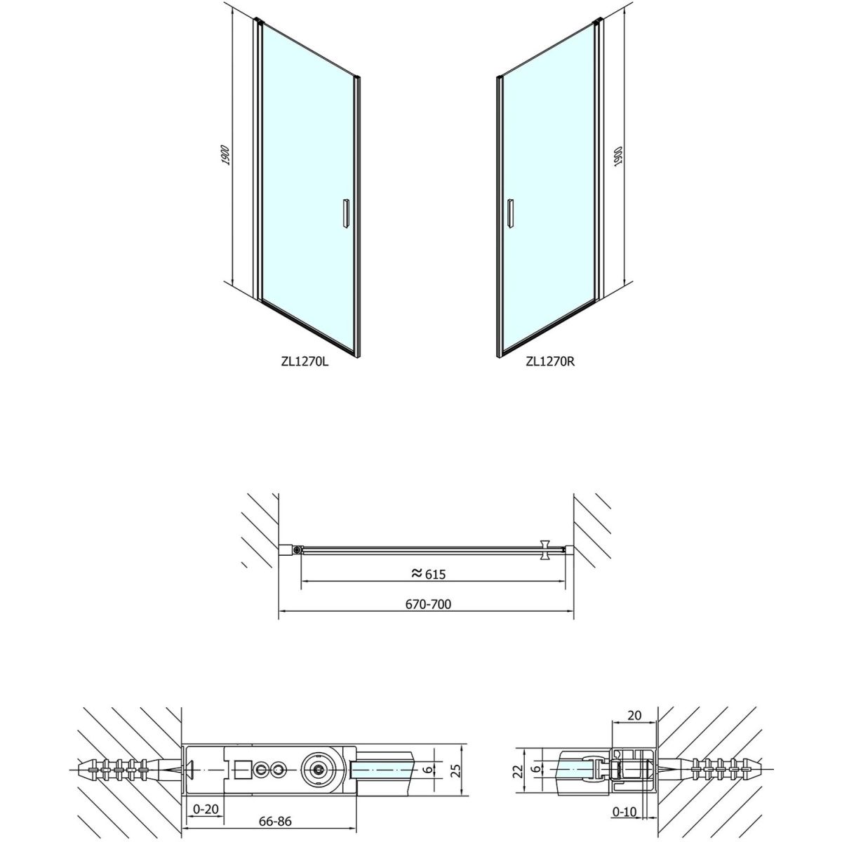 Polysan Zoom Line Duschtüren 70 cm aufklappbar chrom Glanz/durchsichtiges Glas ZL1270