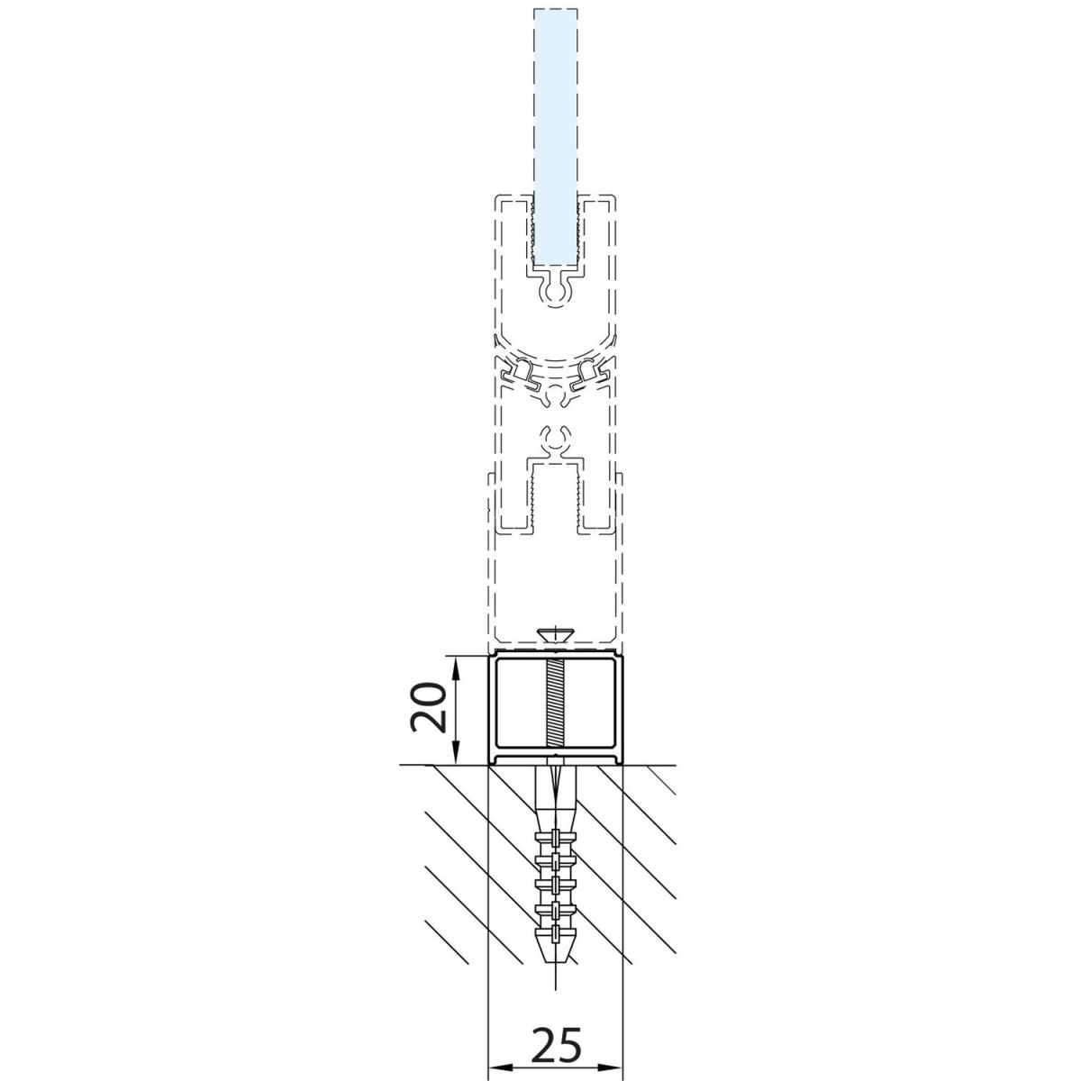 - Das Profil wird an der Wand unter dem ursprünglichen Wandprofil installiert