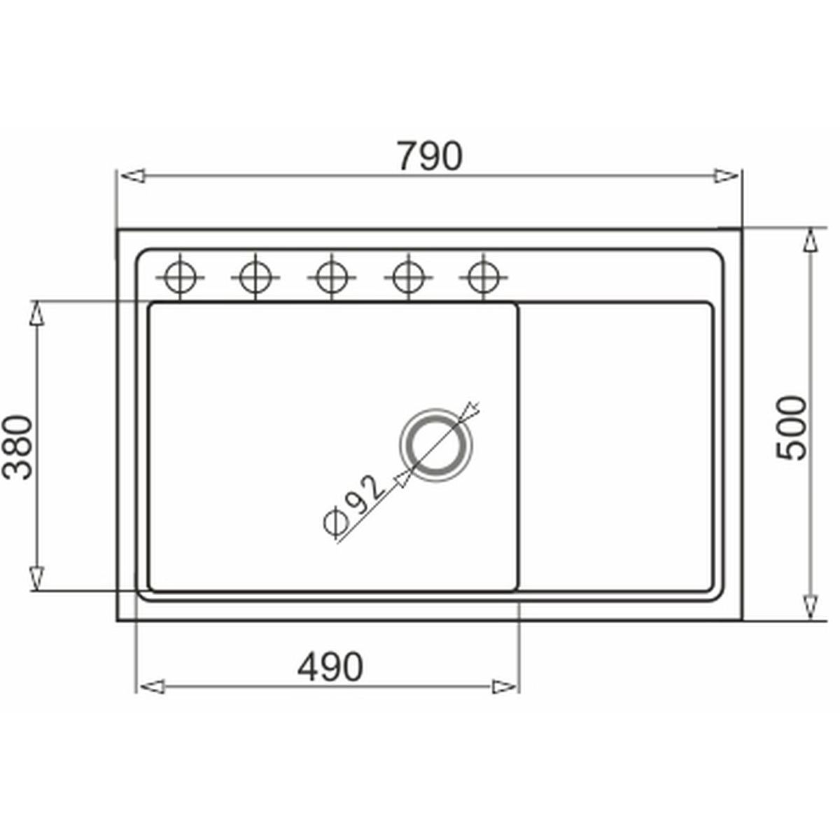 - 5 vorgefräste Öffnungen, die eine beliebige Anordnung von Armaturen und anderem Zubehör ermöglichen,