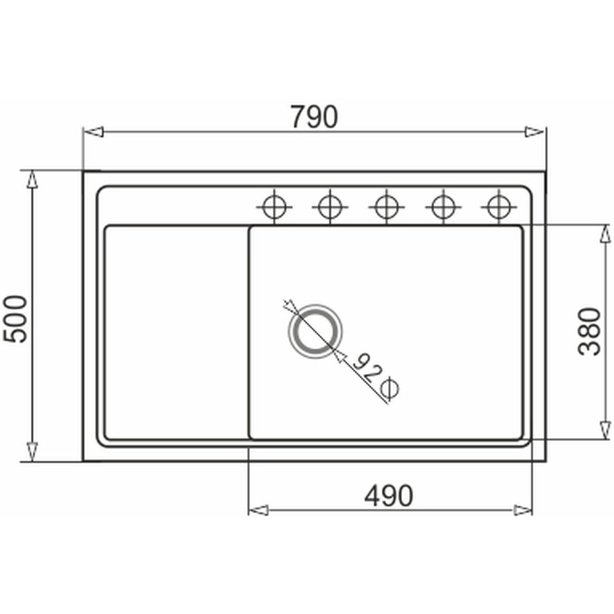 - Abmessungen der Spüle: 49 x 38 cm