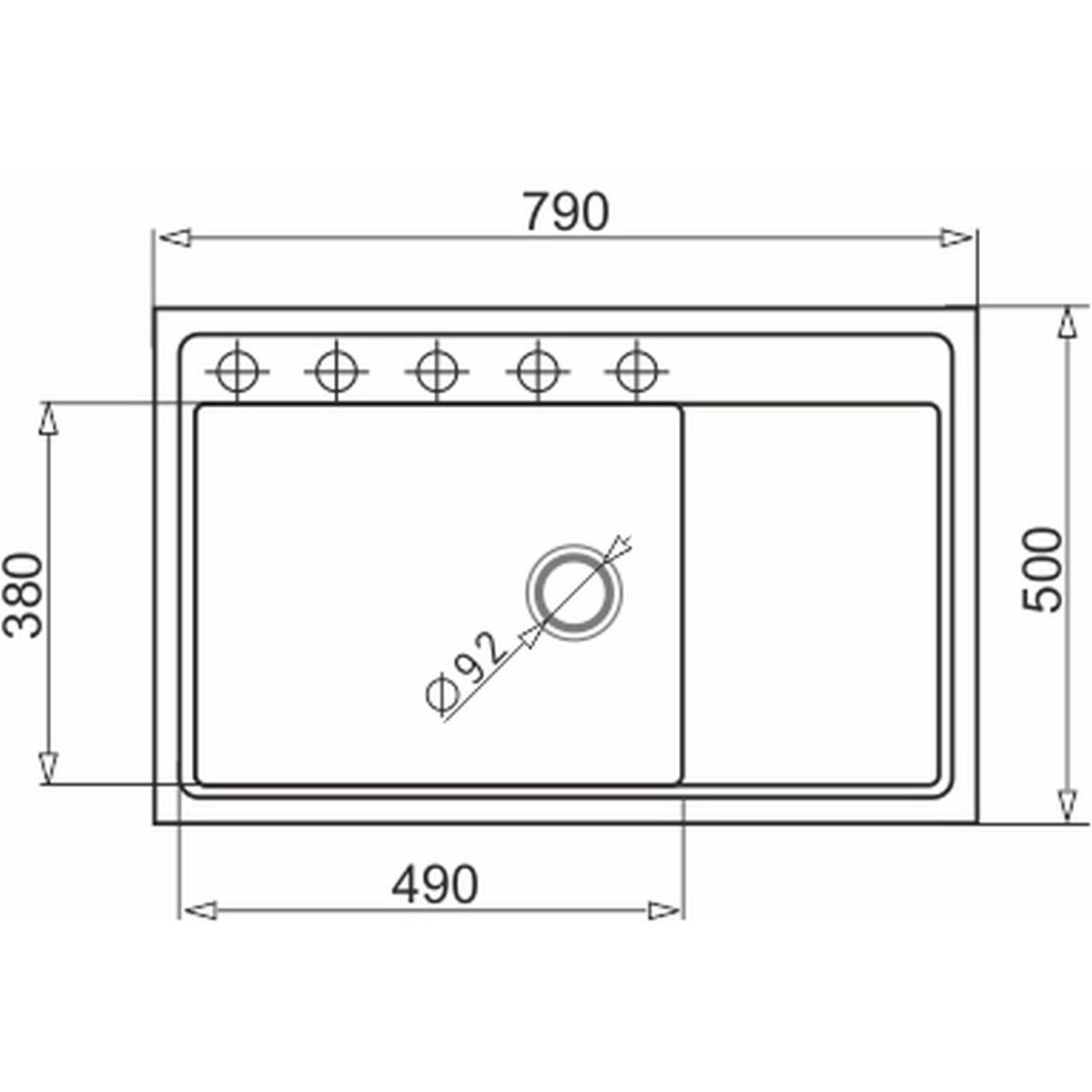 - Abmessungen der Spüle: 49 x 38 cm