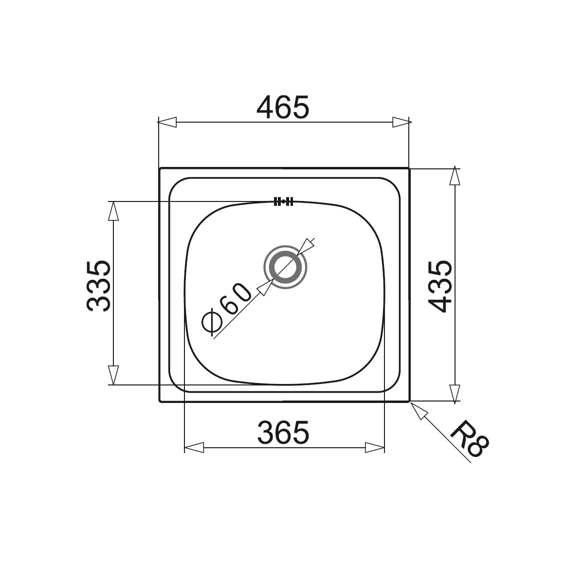 - Abmessungen des Spülbeckens: 435 x 435 mm