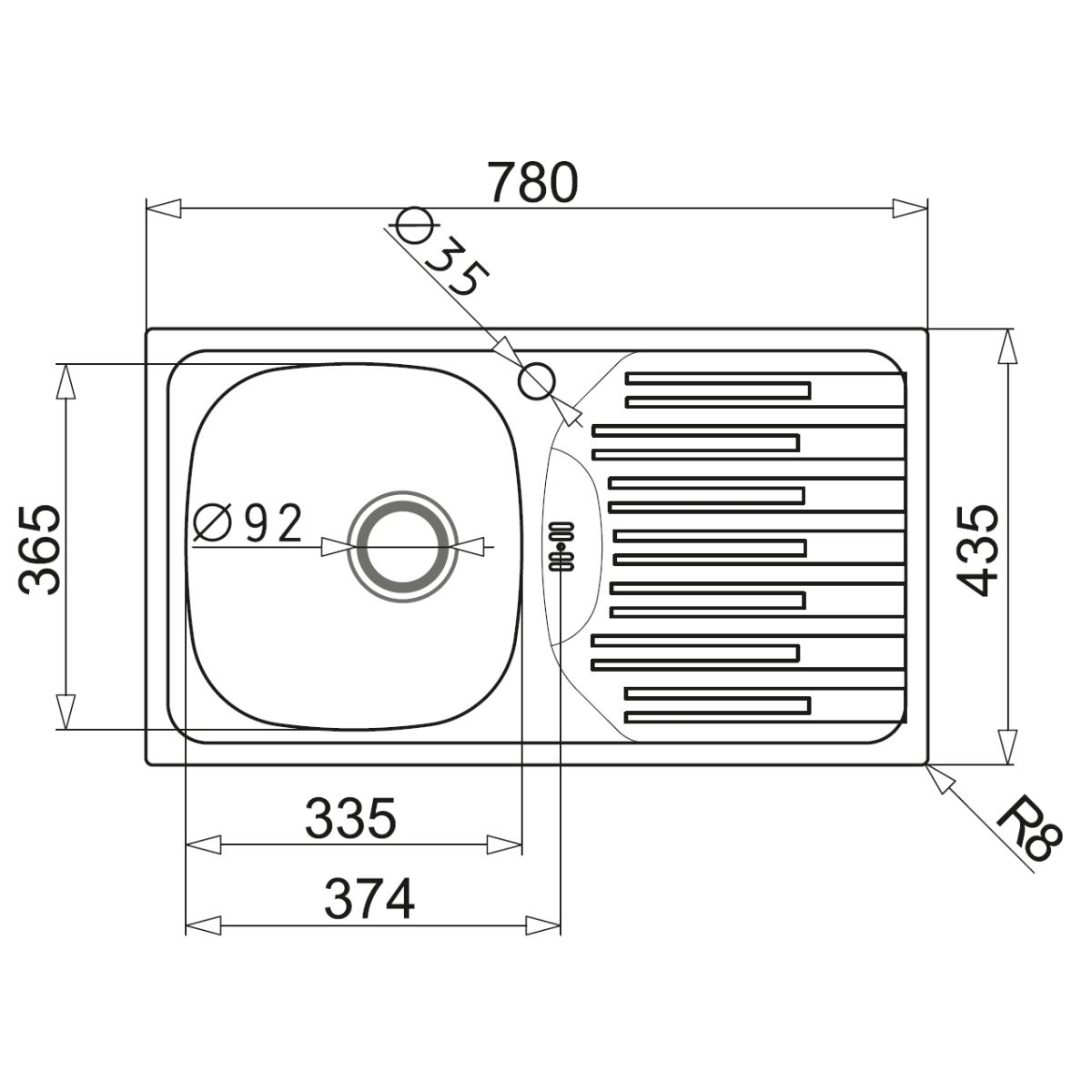 - Abmessungen der Spüle: 78 x 43,5 cm