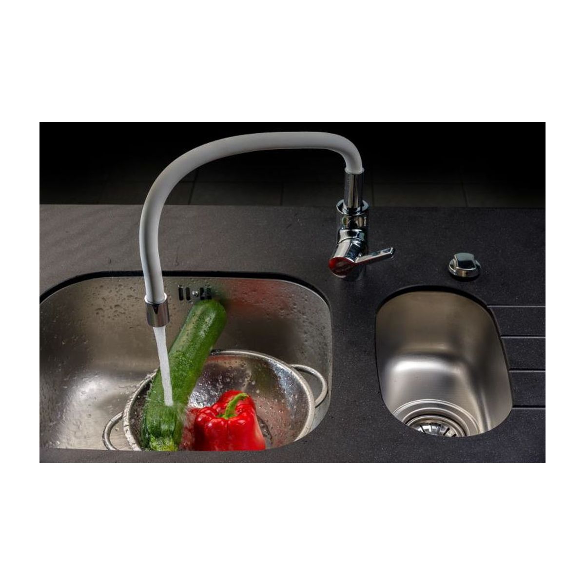 - Dank seiner Flexibilität ermöglicht der Auslauf, den Wasserstrahl genau dorthin zu lenken, wo er benötigt wird