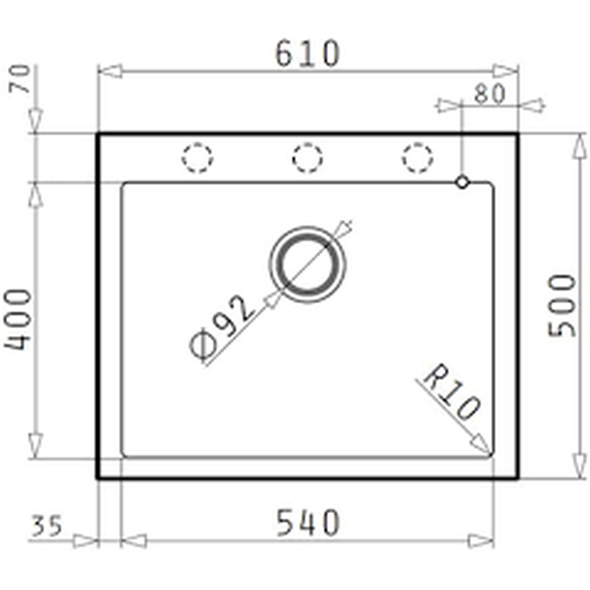 - 3 vorgefräste Öffnungen, die eine beliebige Anbringung von Armaturen und anderem Zubehör ermöglichen, z. B. Flüssigkeitsspender, automatischer Stöpsel