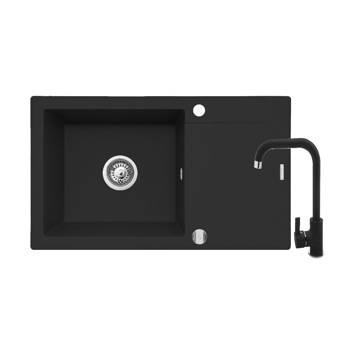 Spülbecken-Set Pyramis KORFU (78x46) 1B 1D volcano – tiefes Schwarz ohne Sprenkel + Armatur SILVIO