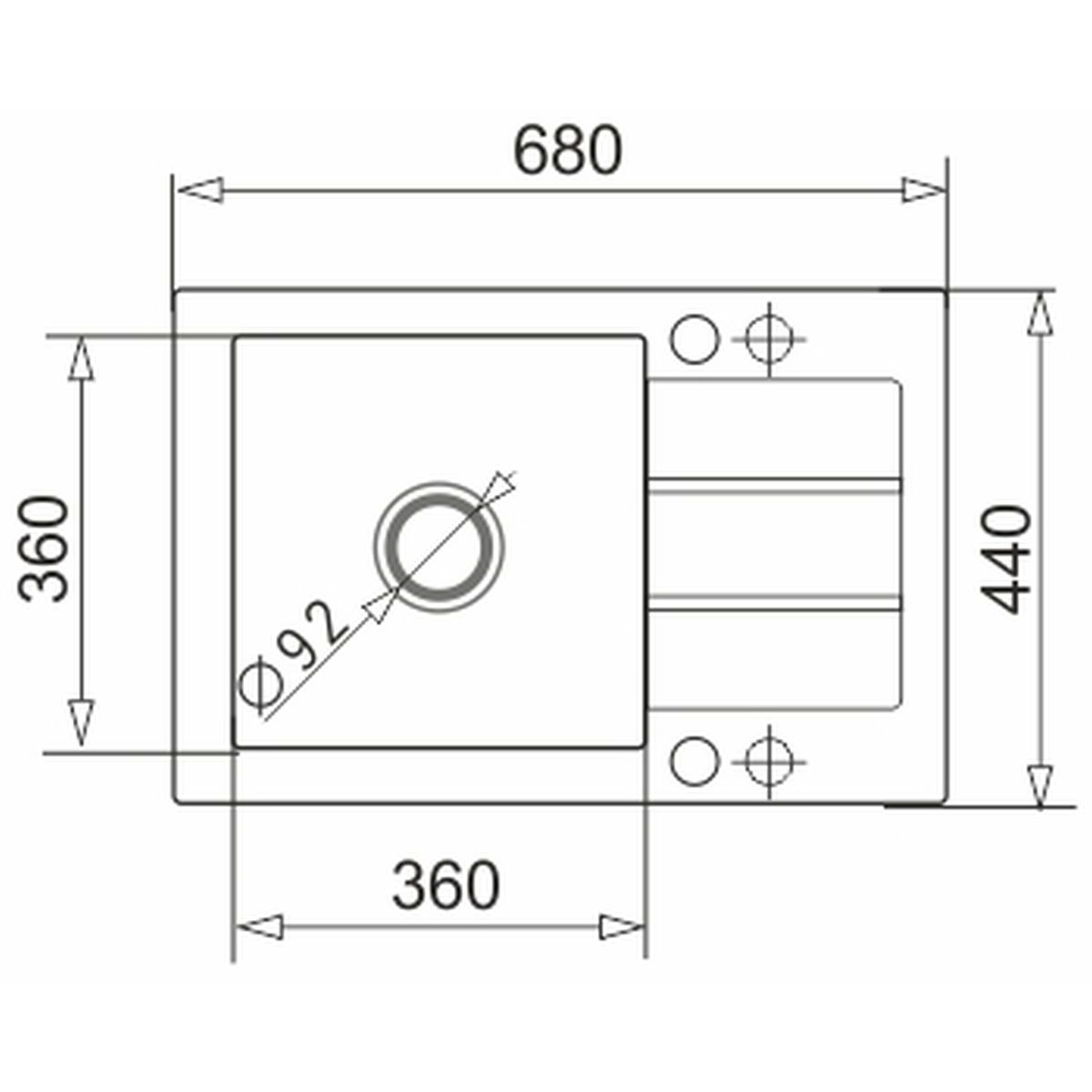 - Abmessungen der Spülbecken: 36 x 36 cm