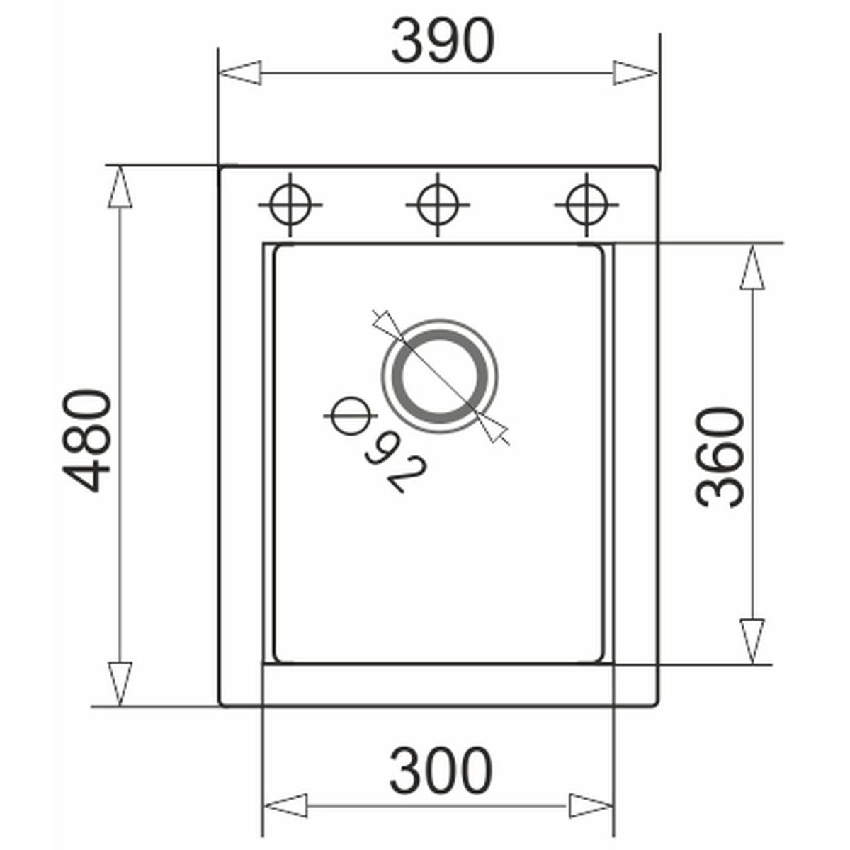 - 3 vorgebohrte Löcher, die eine beliebige Anbringung von Armaturen und anderem Zubehör ermöglichen, z. B. Flüssigkeitsspender, automatischer Stöpsel