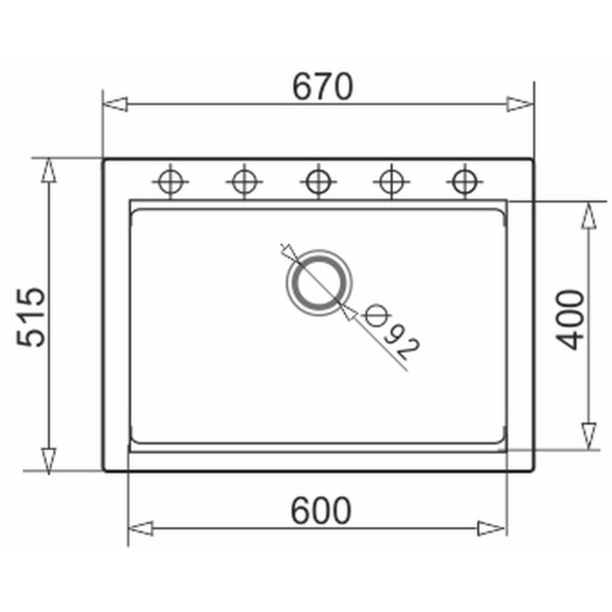 - 5 vorgebohrte Löcher für die freie Platzierung von Armaturen und anderem Zubehör, z. B. Flüssigkeitsspender, automatischer Stöpsel