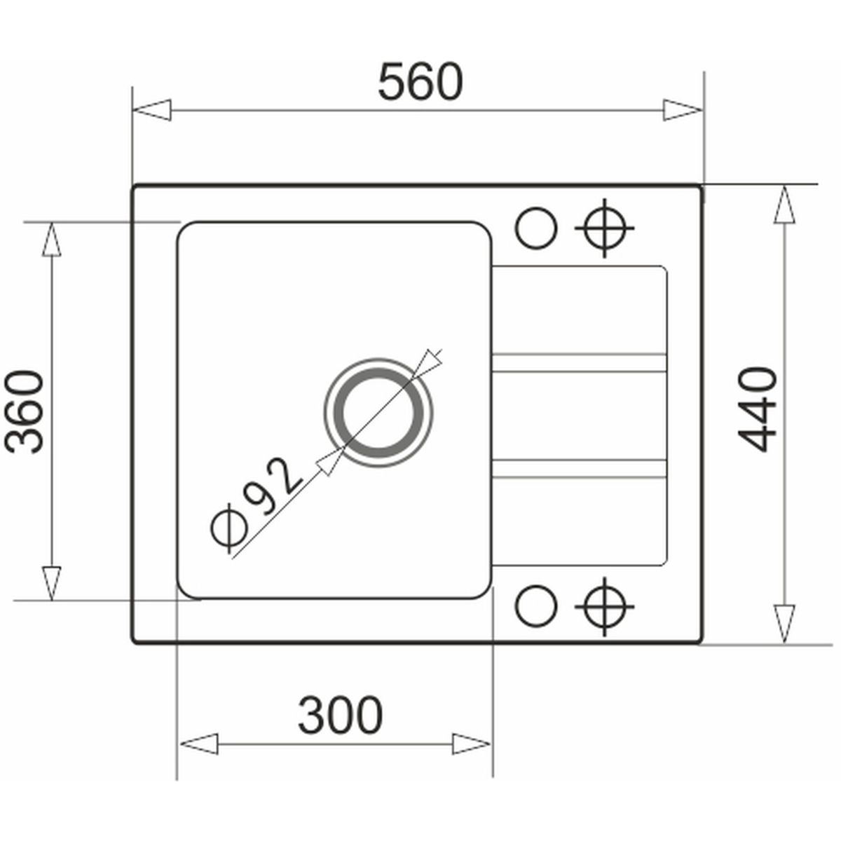 - Abmessungen der Spülbecken: 30 x 36 cm