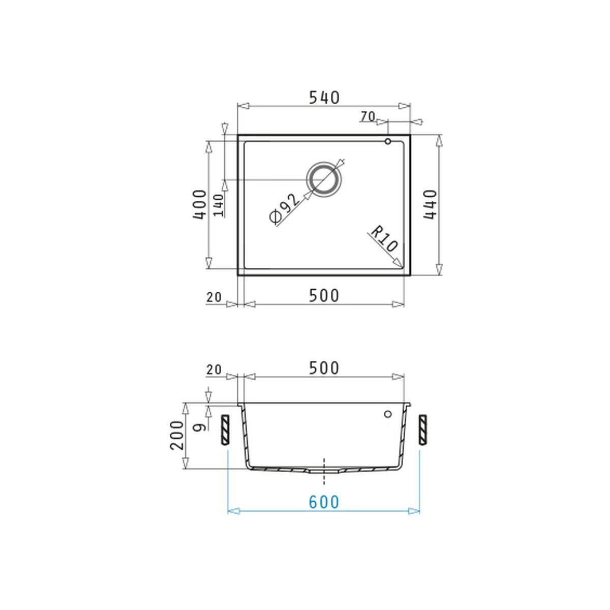 - Länge des Spülbeckens 50 cm