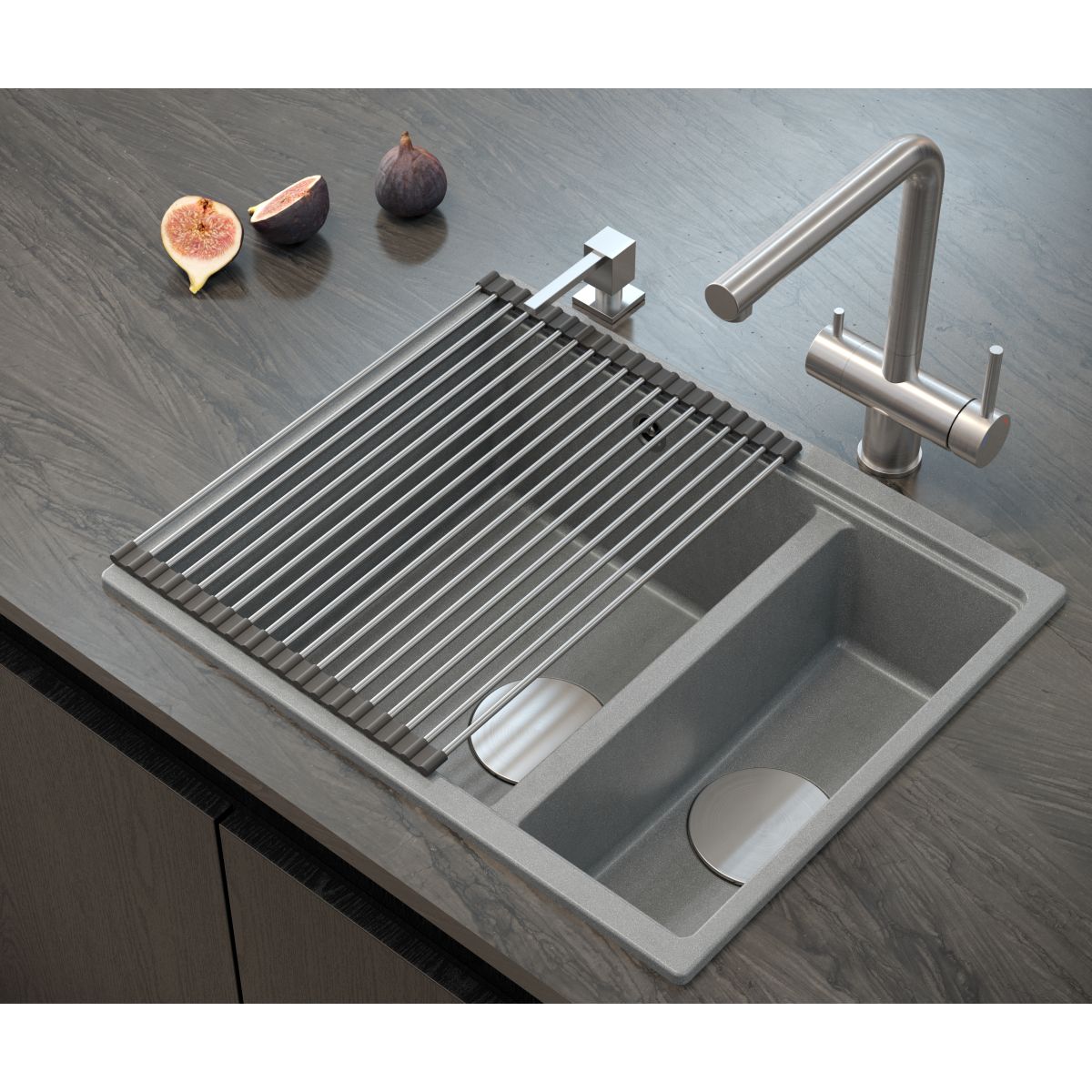 Dieses Element macht Ihre Küche noch attraktiver. Außerdem lässt sich der Spülbecken dank der Abdeckung leichter sauber halten, da keine Speisereste in den Siphon gelangen können.