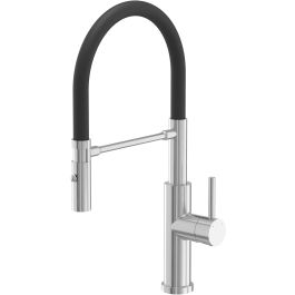 Die Küchenarmatur Andy ist eine Stahlarmatur mit beweglichem, flexiblem Auslauf und Umsteller auf Brausenfunktion.