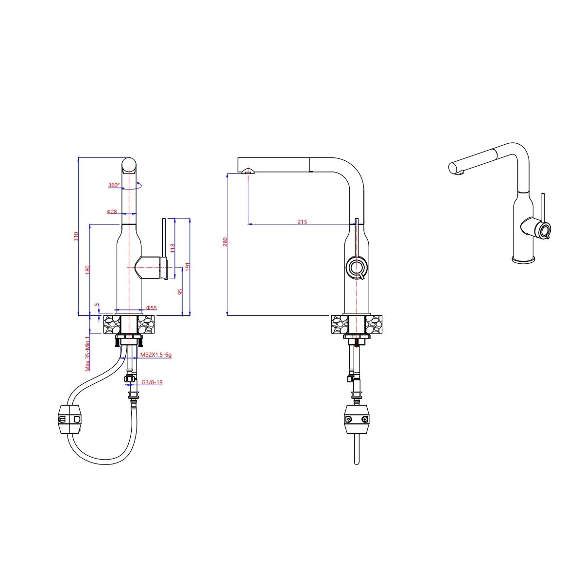 - 360º drehbarer Auslauf