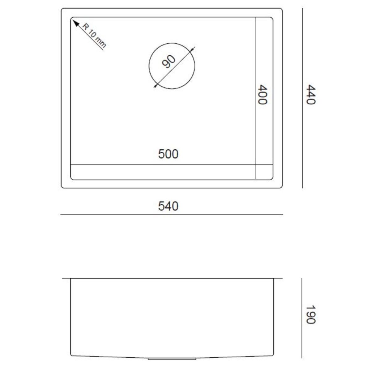 - Abmessungen des Spülbeckens: 54 x 44 cm