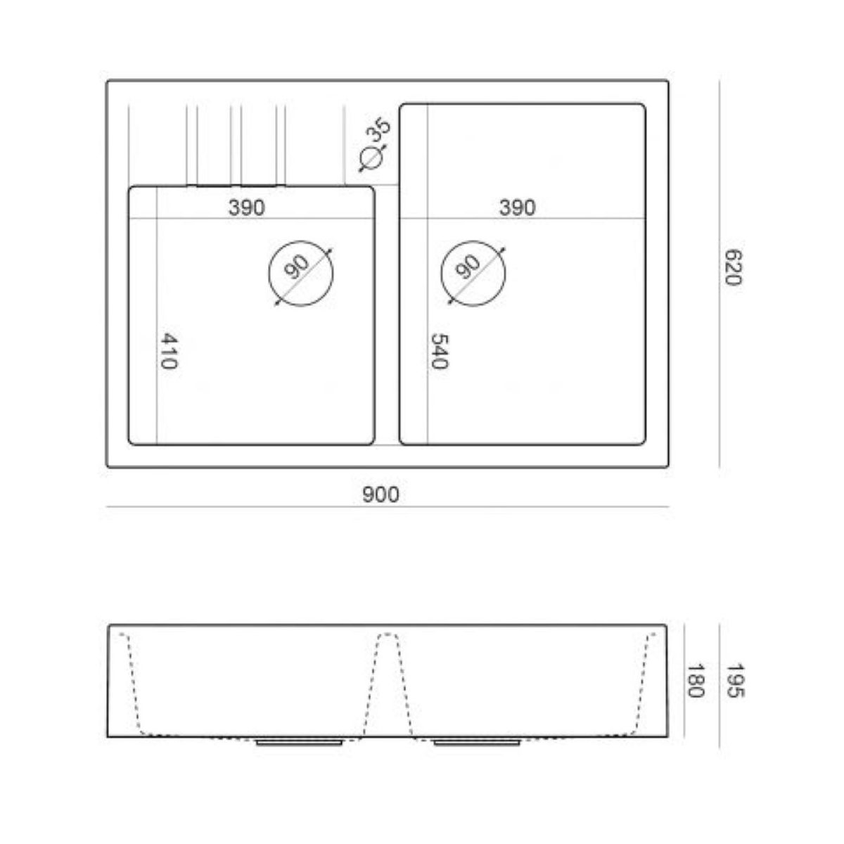 Quadron Bill GraniteQ-Spüle 90x62 cm schwarz HCQB9062U7_BLM