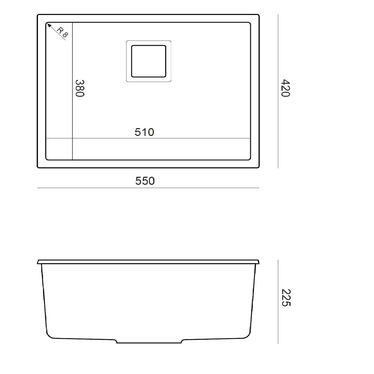 Das Material GraniteQ besteht aus feinen Granitpartikeln (75-80 %), die mit einem hochwertigen Bindemittel (20-25 %) miteinander verbunden sind, wodurch die Spüle eine außergewöhnliche Festigkeit und Widerstandsfähigkeit aufweist.