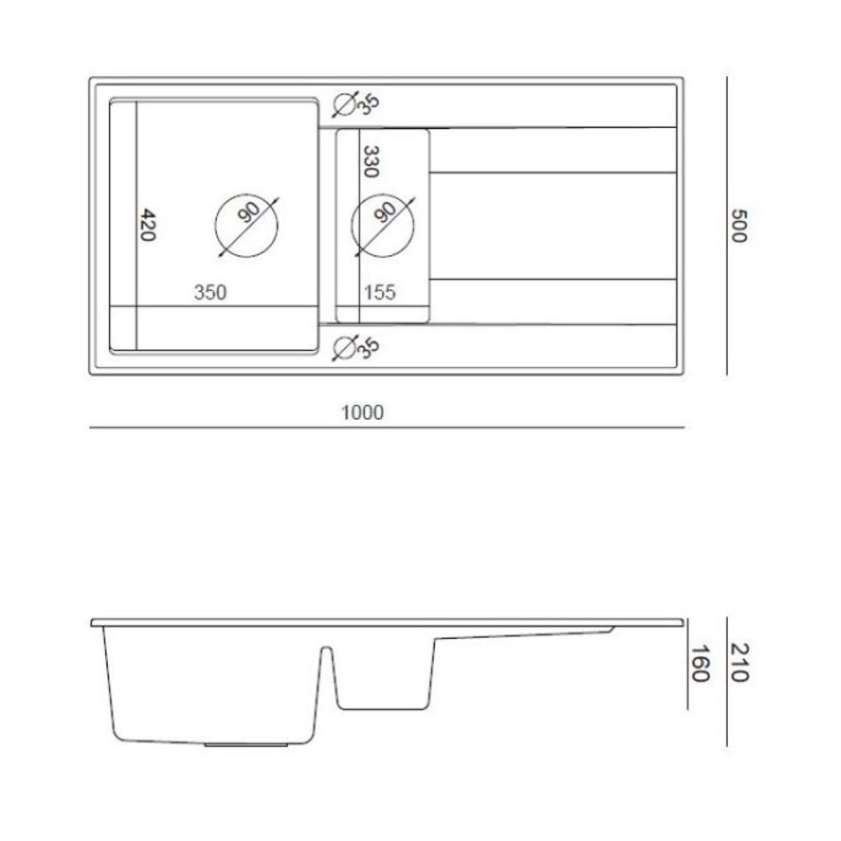 - Wendbare Spüle – die Kammer kann auf der rechten oder linken Seite montiert werden