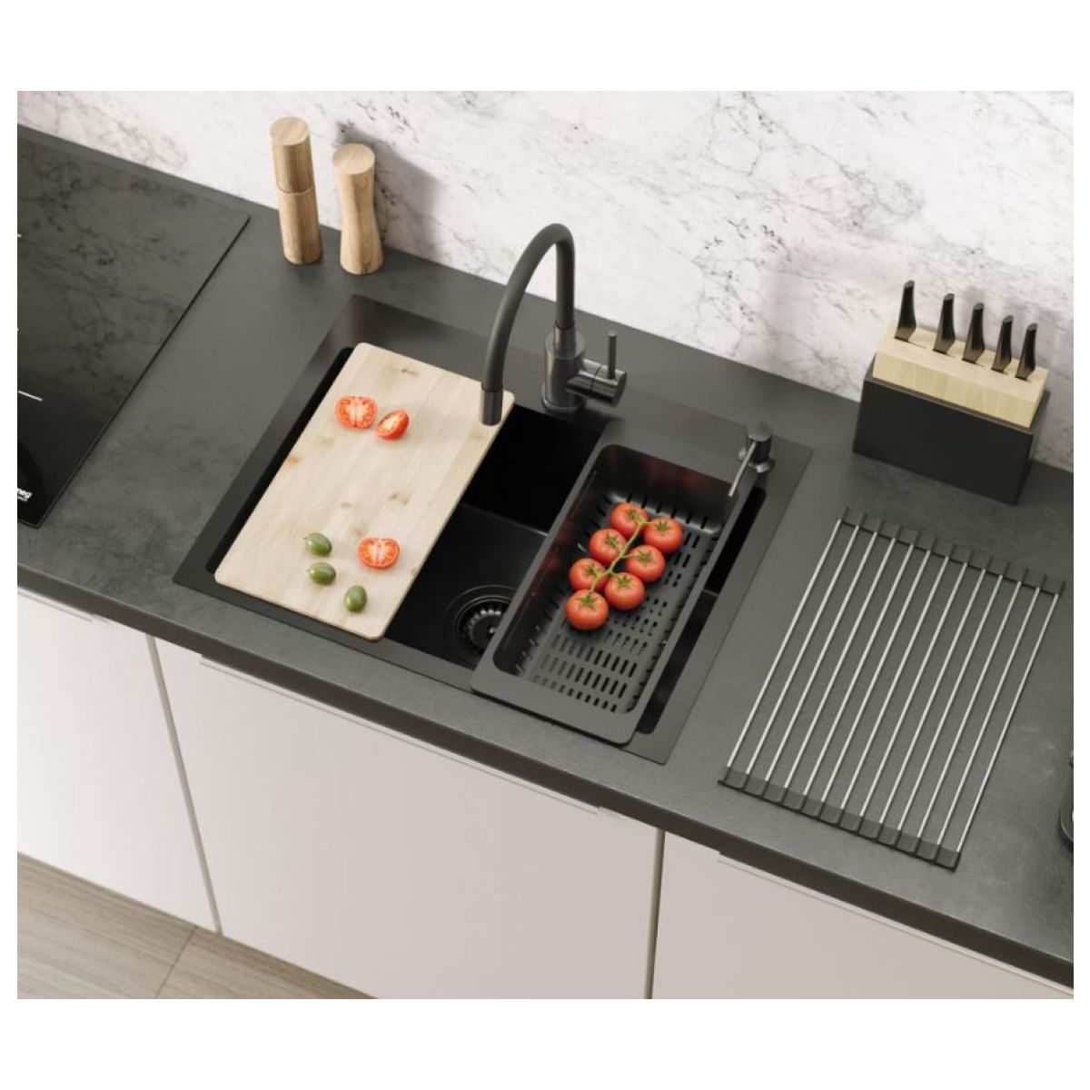 Die Oberfläche passt perfekt zu anderen Quadron-Produkten in der Farbe Black Metal.