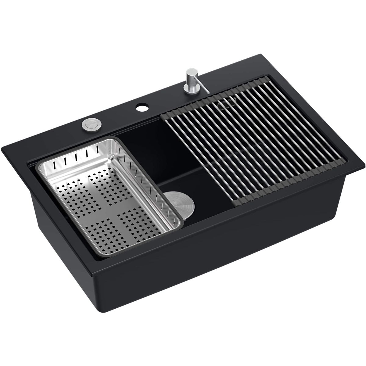 - Spüle in der Farbe Pure Carbon – matte, tintenartige Tiefe von schwarzem Granit