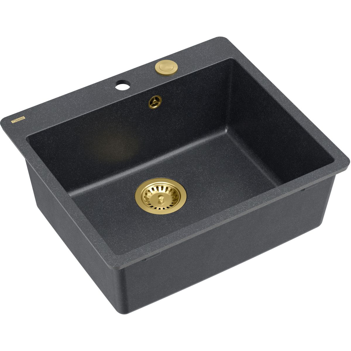 Morgan 110 in der FM-Version für den Einbau auf gleicher Höhe mit der Arbeitsplatte ist eine einkammerige Spüle, die dank ihres Fassungsvermögens vielseitig in der Küche eingesetzt werden kann. Das so montierte Produkt sieht sehr modern aus, verleiht dem Raum Stil und verhindert gleichzeitig, dass Speisereste oder Schmutz an den Rändern hängen bleiben. Mit einem Handgriff können Sie Krümel oder andere Rückstände in die Spülkammer kehren, was die Reinigung erheblich erleichtert. Dieses Modell ist standardmäßig mit einem automatischen Push-2-Open-Siphon ausgestattet, sodass Sie Ihre Hände nicht nass machen müssen, um die Kammer zu leeren. Dank seiner Vorteile – einer großen Kammer mit einem funktionalen Siphon und der Art der Montage – ist die Spüle Morgan 110 FM nicht nur eine großartige praktische Lösung, sondern auch ein gut aussehendes Element Ihrer Küche. Das Produkt ist in der Farbe Black Diamond mit goldenen Elementen erhältlich.