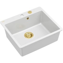 Morgan 110 in der FM-Version für den Einbau auf gleicher Höhe mit der Arbeitsplatte ist eine Einbeckenspüle, die dank ihres Fassungsvermögens vielseitig in der Küche eingesetzt werden kann. Das so montierte Produkt sieht sehr modern aus, verleiht dem Raum Stil und verhindert gleichzeitig, dass Speisereste oder Schmutz an den Rändern hängen bleiben. Mit einem Handgriff können Krümel oder andere Rückstände in die Spülbeckenkammer gekehrt werden, was die Reinigung erheblich erleichtert. Dieses Modell ist standardmäßig mit einem automatischen Push-2-Open-Siphon ausgestattet, sodass Sie Ihre Hände nicht nass machen müssen, um die Kammer zu leeren. Dank seiner Vorteile – einer großen Kammer mit einem funktionalen Siphon und der Art der Montage – ist die Spüle Morgan 110 FM nicht nur eine großartige praktische Lösung, sondern auch ein schönes Element der Küche. Das Produkt ist in der Farbe Snow White mit goldenen Elementen in satinierter Ausführung erhältlich.